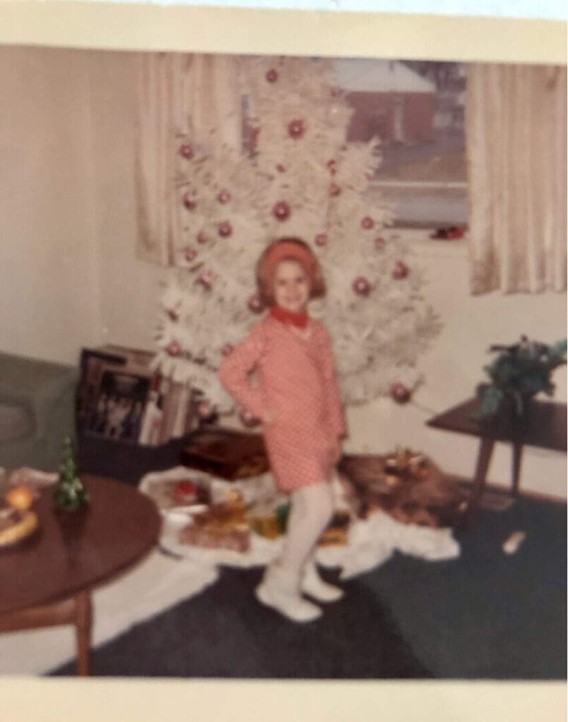 And now, going back to the Christmas tree that started it all! Look at those boots and the Flocked tree with pink ornaments. My mom was ahead of her time!