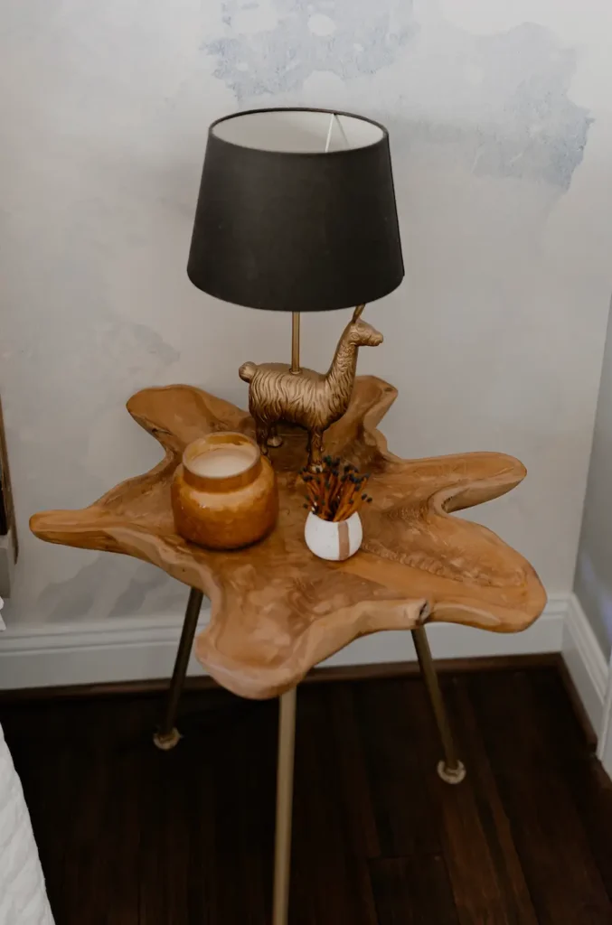 Incorporating vintage pieces is one of my favorite seasonal decorating tricks—it gives every space a personal touch. For this cozy fall bedroom, I brought back my stack of vintage suitcases to use as a nightstand. I think these suitcases have been used in at least four different places in my home over the years! With the warmer tones I was introducing through the bedding, it felt like the perfect time to bring them out again.