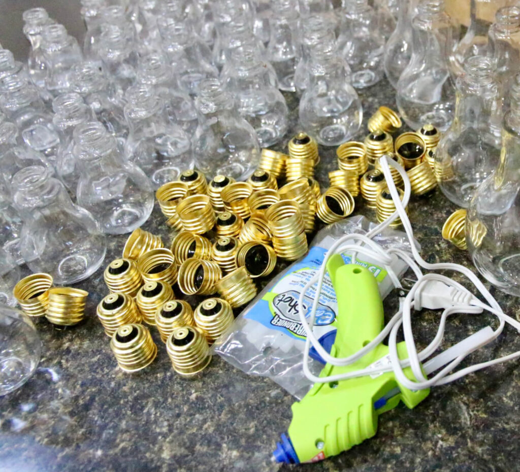 Putting this tree together was relatively easy! I used three different sizes of glass vases that I had leftover from a bridal shower I hosted for my daughter-in-law (similar here).
